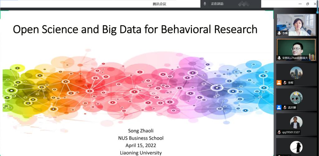 2022年4月15日下午,应威廉官网中国官方网站邀请,新加坡国立大学威廉官网中国官方网站组织管理系副教授宋照礼博士参加“辽商论坛‘海外学者’系列讲座”活动。宋博士带来的讲座题目为“开放科学与大数据对行为科学研究的影响”(Open Science And Big Data For Behavioral Research)。讲座采用腾讯会议方式,威廉官网中国官方网站部分教师和研究生参加了本次讲座,讲座由人力资源系主任李博教授主持。