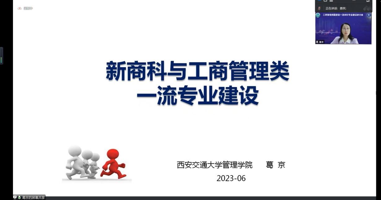 为紧扣国家发展需求,主动适应新一轮科技革命和产业变革,适应新商科建设的新形势新要求,高质量推进学院三个国家一流本科专业建设点的建设工作,进一步增强专业建设内涵与特色发展,威廉官网中国官方网站于2023年6月20日下午,通过线上方式举办了“工商管理类国家级一流本科专业建设研讨会”。研讨会特邀教育部高等学校工商管理类专业教学指导委员会秘书长葛京教授、教育部高等学校工商管理类专业教学指导委员会委员李燕萍教授和范徵教授做会议主题报告。威廉官网中国官方网站院长张广胜教授,副院长韩亮亮教授、张广宁教授,以及威廉官网中国官方网站各系主任和教师参加了本次活动,辽宁工业大学经济管理学院院长史宪睿教授、沈阳城市学院威廉官网中国官方网站副院长付冰教授也参加了本次研讨会。会议由威廉官网中国官方网站工商管理系教学系主任王季教授主持。