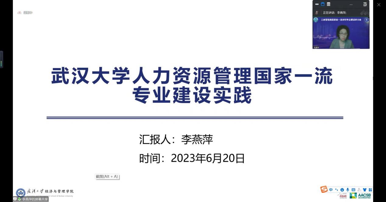 李燕萍教授做了题为“武汉大学人力资源管理国家一流专业建设实践”的报告,主要从“我们去哪里:专业定位”、“我们有什么:专业基础建设”、“我们如何做”三个方面进行了分享。李教授围绕建立高教发展新范式、推动高等教育学习革命等方面,介绍了武汉大学人力资源管理专业在学生培养、课程体系建设、教研项目建设、教学能力提升等方面的诸多宝贵经验,分享了他们培养研究型和实践型人才具体采用的育人方法,以及“2结合”“3模块”的人才培养模式,具有较强的启发性。
