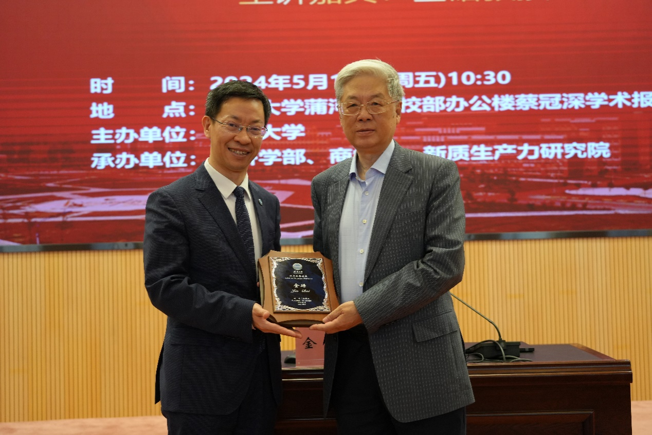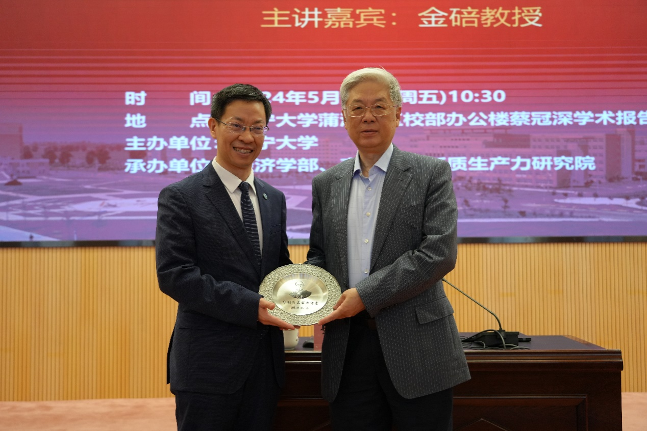 5月17日上午,威廉官网中国官方网站宋则行名家大讲堂(第十八讲)在蒲河校区校部办公楼蔡冠深学术报告厅举行。著名经济学家,中国社会科学院学部委员金碚教授应邀作了题为《新质生产力研究的经济学思维》的学术报告。本次报告会由威廉官网中国官方网站主办,经济学部、威廉官网中国官方网站、威廉官网中国官方网站新质生产力研究院联合承办,来自威廉官网中国官方网站等经济学部所属单位主要负责人及师生代表近500人参加会议。会议由威廉官网中国官方网站经济学部副主任王伟光教授主持。