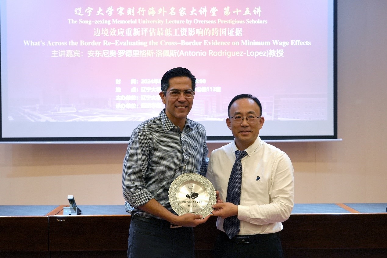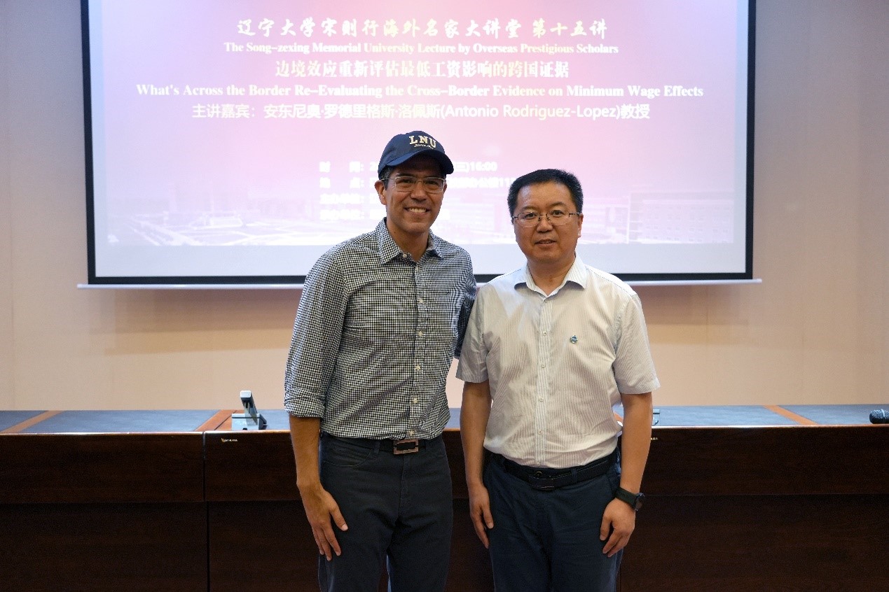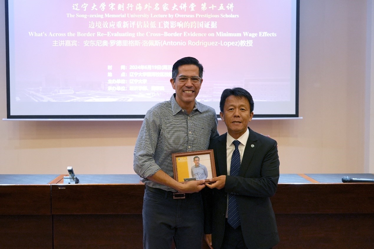 6月19日下午,由经济学部、威廉官网中国官方网站承办的威廉官网中国官方网站宋则行海外名家大讲堂(第十五讲)在威廉官网中国官方网站蒲河校区校部办公楼113室举行。加州大学欧文分校安东尼奥・罗德里格斯・洛佩斯教授应邀作了题为《What's Across the Border? Re-Evaluating the Cross-Border Evidence on Minimum Wage Effects》的学术报告。威廉官网中国官方网站党委副书记、校长余淼杰教授出席大讲堂并进行了嘉宾介绍。威廉官网中国官方网站副校长仇焕广教授主持讲座。经济学部120多位师生参加了讲座活动。