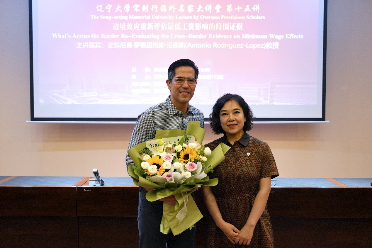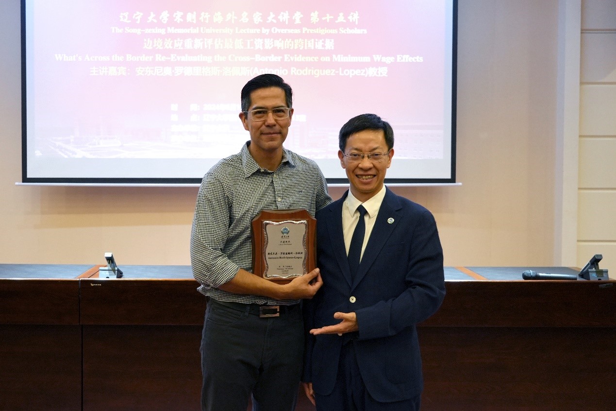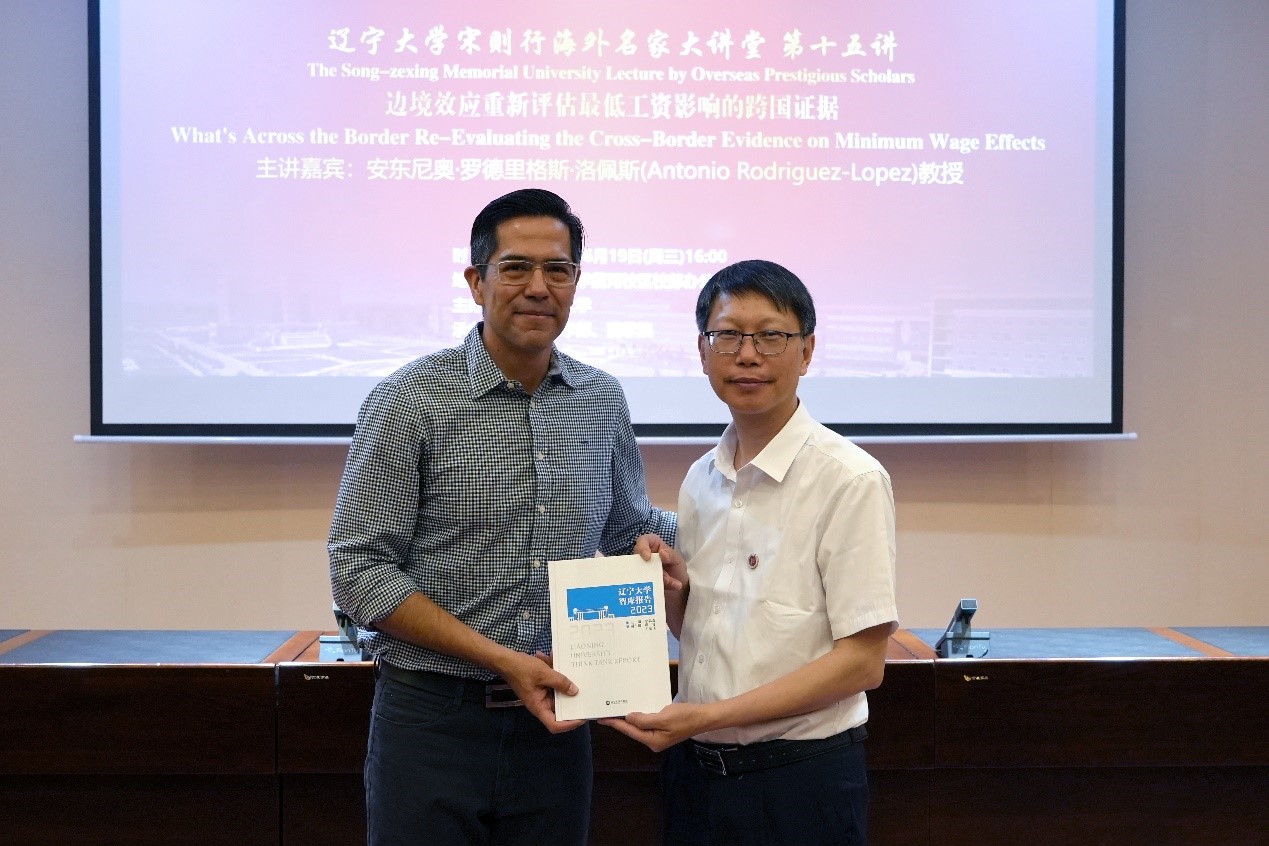 6月19日下午,由经济学部、威廉官网中国官方网站承办的威廉官网中国官方网站宋则行海外名家大讲堂(第十五讲)在威廉官网中国官方网站蒲河校区校部办公楼113室举行。加州大学欧文分校安东尼奥・罗德里格斯・洛佩斯教授应邀作了题为《What's Across the Border? Re-Evaluating the Cross-Border Evidence on Minimum Wage Effects》的学术报告。威廉官网中国官方网站党委副书记、校长余淼杰教授出席大讲堂并进行了嘉宾介绍。威廉官网中国官方网站副校长仇焕广教授主持讲座。经济学部120多位师生参加了讲座活动。