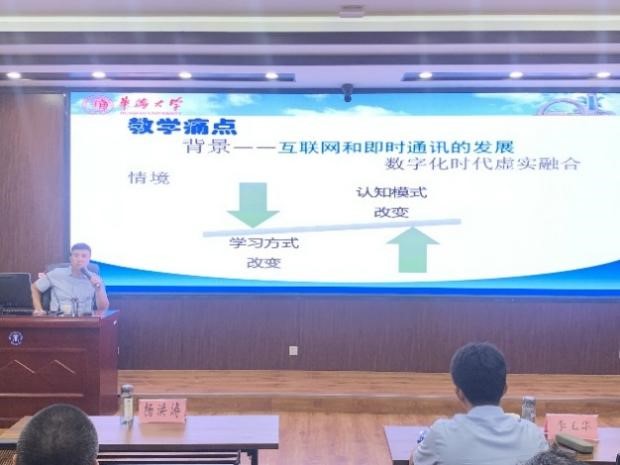 杨洪涛教授以“如何高质量推进省级、国家级一流本科专业建设点建设?”为题,立足于教育部全面推进高校课程思政高质量建设、大力推进慕课与在线教学创新发展、以数字化转型引领高等教育高质量发展等大背景,对如何高质量推进国家级一流本科专业建设点建设,分享了自己的专业见解以及华侨大学的经验做法。杨洪涛教授还详细剖析了课程设置的模块化、数字化时代虚实融合背景下的真实问题和教学痛点问题,特别是课程思政教学中的真实问题;提出了一流专业建设的六维度,即一流师资、一流课程、一流教学、一流教材、一流成果、一流学生;分享了“以学生为中心”的线上线下混合式12345教学设计与实践的教学模式,即一个理念、二个课堂、三个方法、四个保障、五个平台。杨洪涛教授的讲座内容上具有专业洞见,风格上风趣幽默,原计划90分钟的分享,在与会教师专注下不知不觉延长到了120分钟。讲座最后,杨洪涛教授与学院教师展开互动和研讨,并细致地进行了答疑解惑。本次讲座在热烈的掌声中圆满结束。