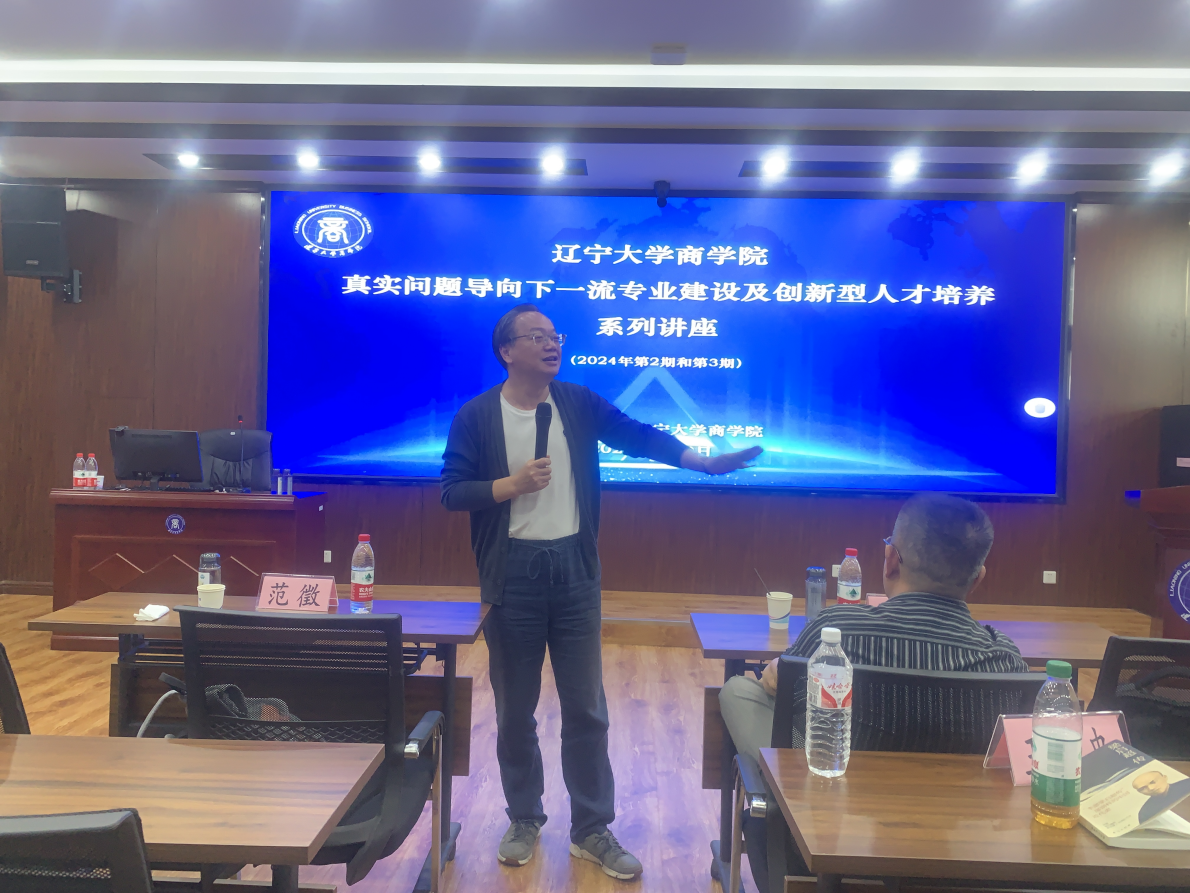 2024年7月9日下午,由威廉官网中国官方网站主办的“真实问题导向下一流专业建设及创新型人才培养”系列讲座(2024年第2期和第3期),在蒲河校区励行楼402举行。本次讲座邀请了中央财经大学孙国辉教授和上海外国语大学范徵教授担任主讲人,分别开展主题为“一流专业建设进展中的问题再思考”和“智能时代威廉官网中国官方网站教什么?学什么?”的讲座。威廉官网中国官方网站李玉华书记、副院长韩亮亮教授、副院长徐业坤教授、各专业教学和科研系主任、系主任助理、基层教学组织(研究中心、教学团队等)负责人以及专任骨干教师等参加了讲座。讲座由威廉官网中国官方网站副院长张广宁教授主持。