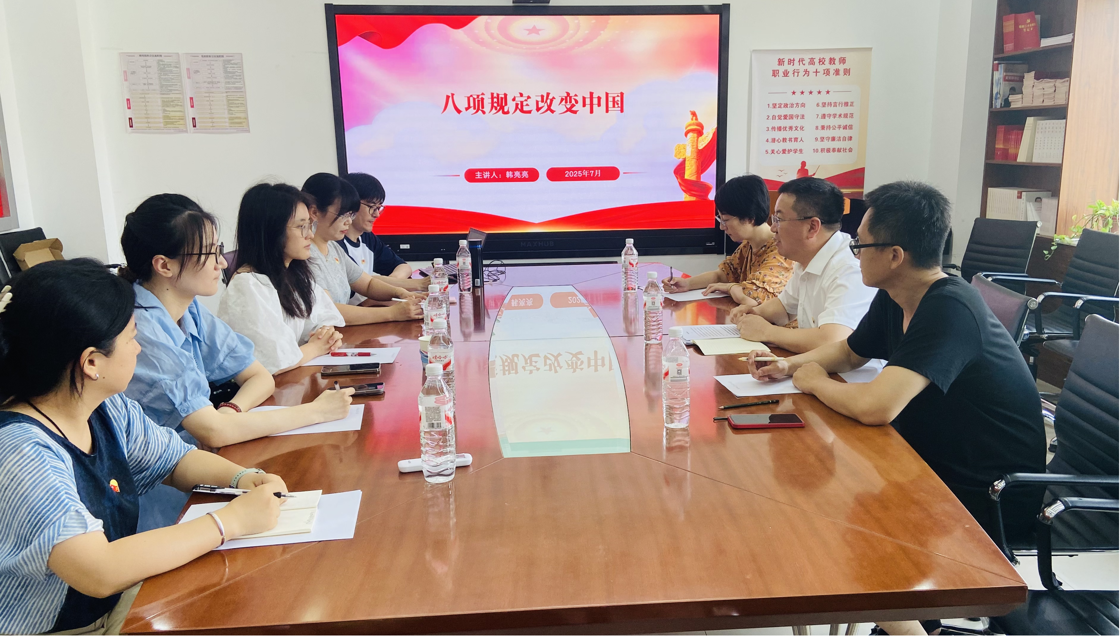 7月9日,威廉官网中国官方网站党委副书记、院长韩亮亮在蒲河校区则行楼326会议室为威廉官网中国官方网站工商党支部全体党员讲授“八项规定改变中国”党课。