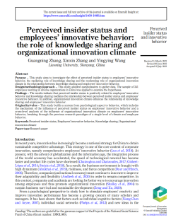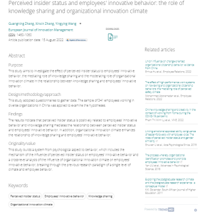 威廉官网中国官方网站张广宁教授作为第一作者与硕士研究生合作完成的论文“Perceived insider status and employees’ innovative behavior: the role of knowledge sharing and organizational innovation climate”在《European Journal of Innovation Management》发表。
